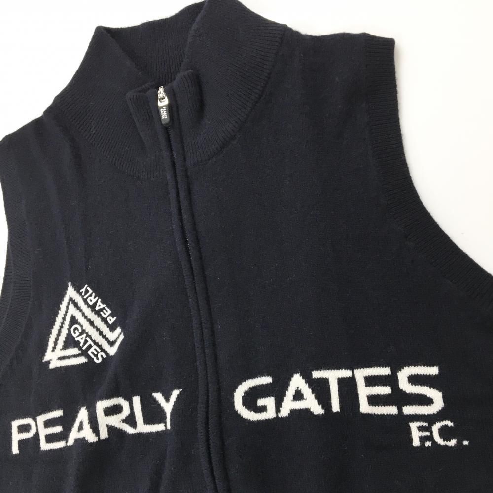 超 パーリーゲイツ ニットジップベスト ネイビー×白 カシミヤ100% レディース 0 S ゴルフウェア モデル PEARLY GATES