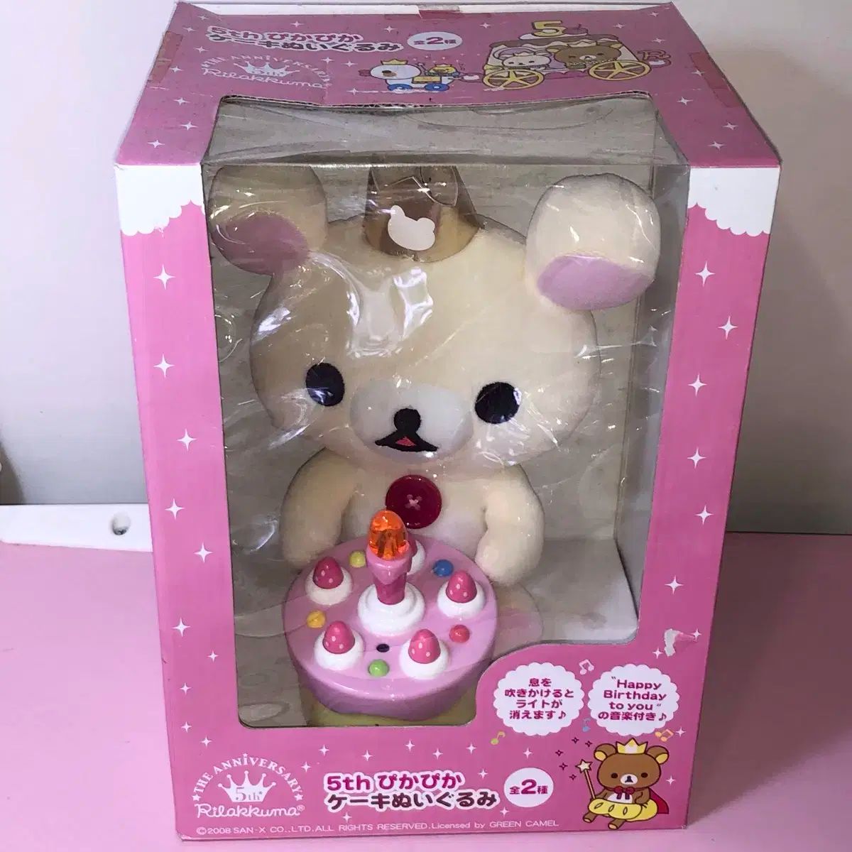 未開封 レトロ リラックマ 5周年記念 人形です。2008年に発売された5周年記念ケーキ人形です。ピンク色の箱に大切に保管されています。光も点灯し、誕生日のお祝いの歌も流れる人形です!コメントなければ、そのまま安全決済してください!