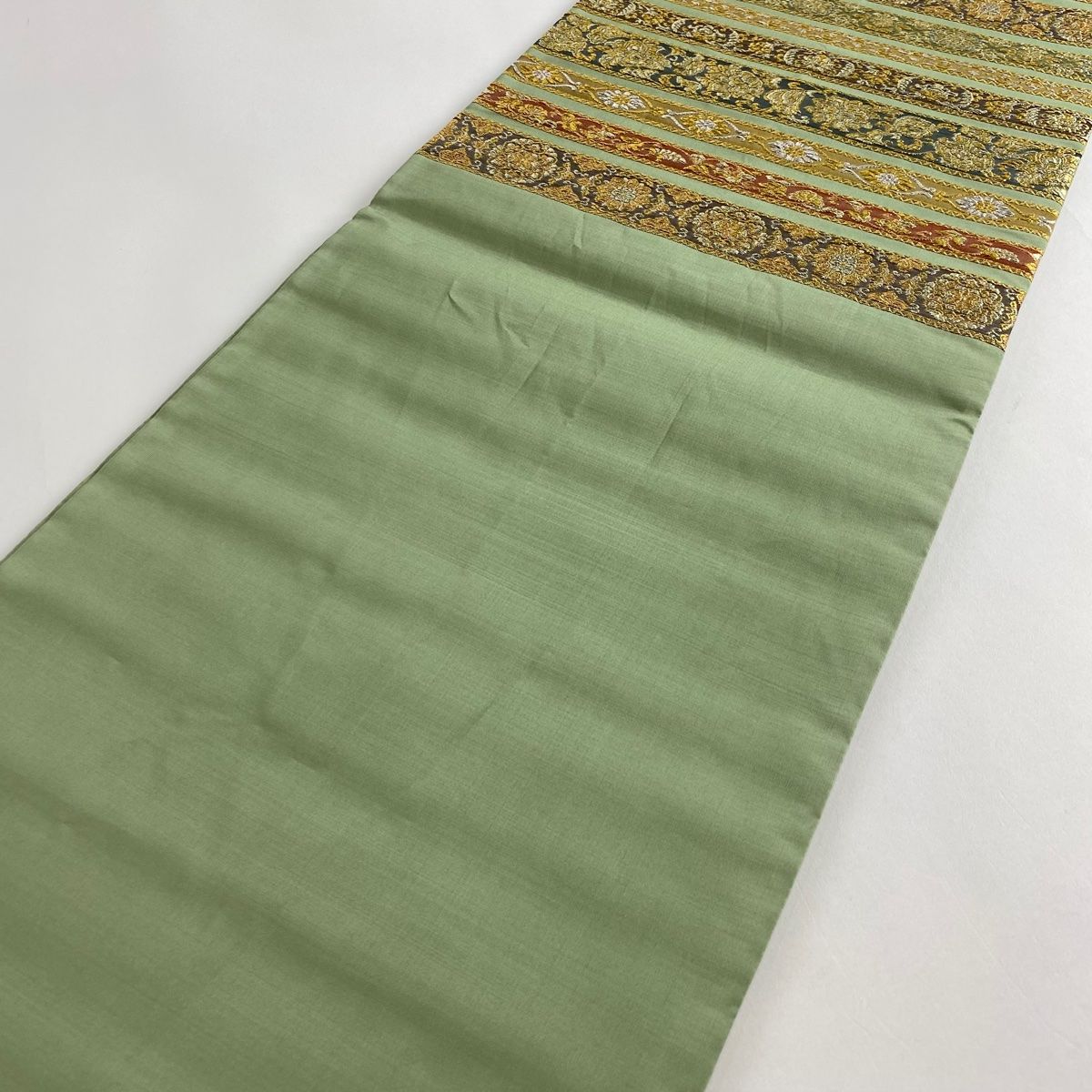 袋帯 秀品 華文 草花 金銀糸 抹茶色 六通 正絹