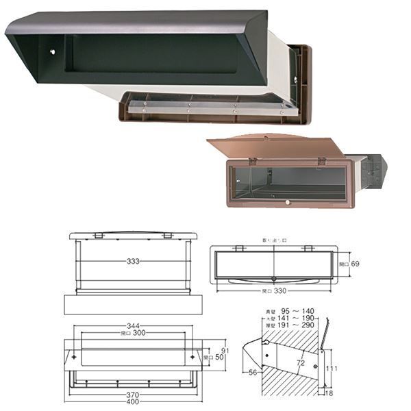 【サイズ・耐荷重】受口部:幅(mm)400高さ(mm)91取出し口開口寸法:幅(mm)330高さ(mm)69壁厚調整範囲141〜190mm