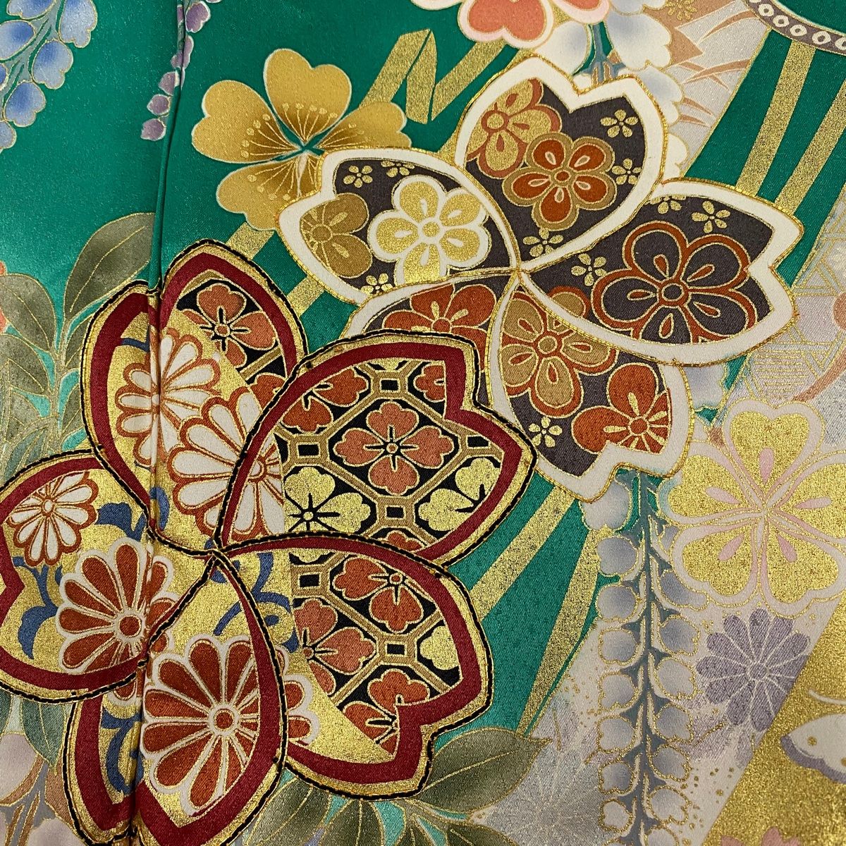 振袖 身丈161 cm 裄丈64 M 袷 桜 藤 金彩 金糸 緑 正絹 秀品