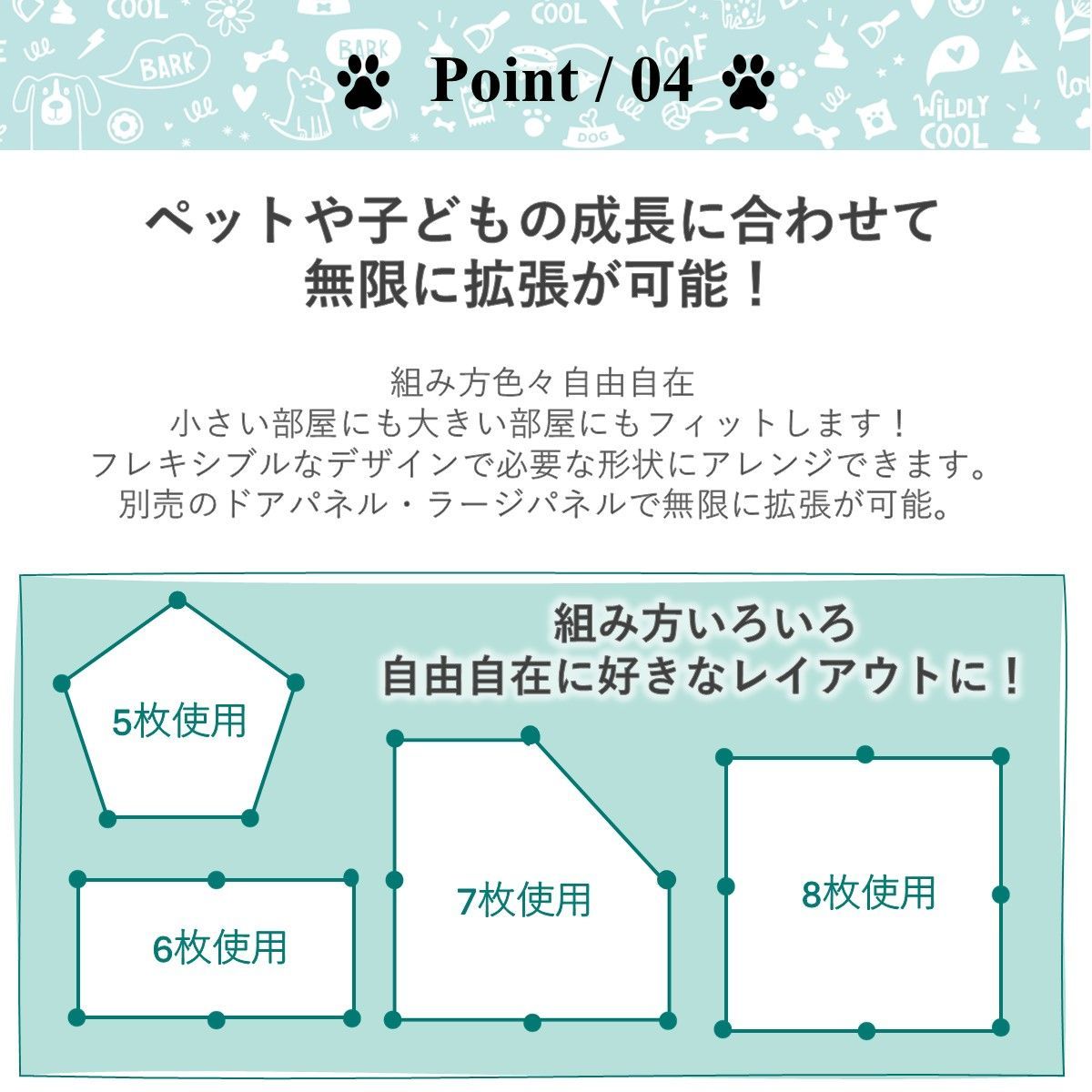 追加パネル・ドアパネルは何枚でも追加可能です。ワンちゃんの成長に合わせても幅広い用途に対応します。