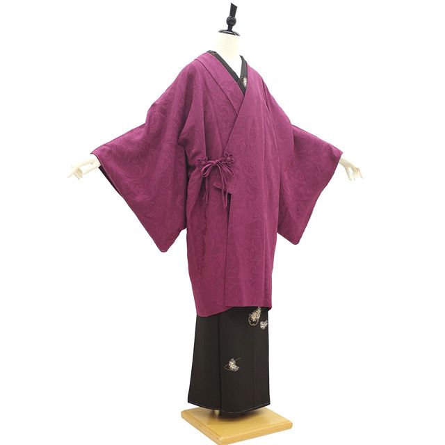 着物衿 コート 正絹 袷 赤紫色 オーキッドパープル 地紋 花唐草 フォーマル ~ カジュアル 春 秋 冬 美しいお色合い 着物衿コート 仕立て上がり 身丈98 裄丈67.5 M~Lサイズ ハオリモノ みやがわ sb 16332