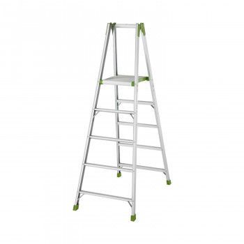 天板に乗れる上枠付脚立!天板は2つ折れ構造。天板を上げるだけの簡単操作。上枠高さ:H593mm
