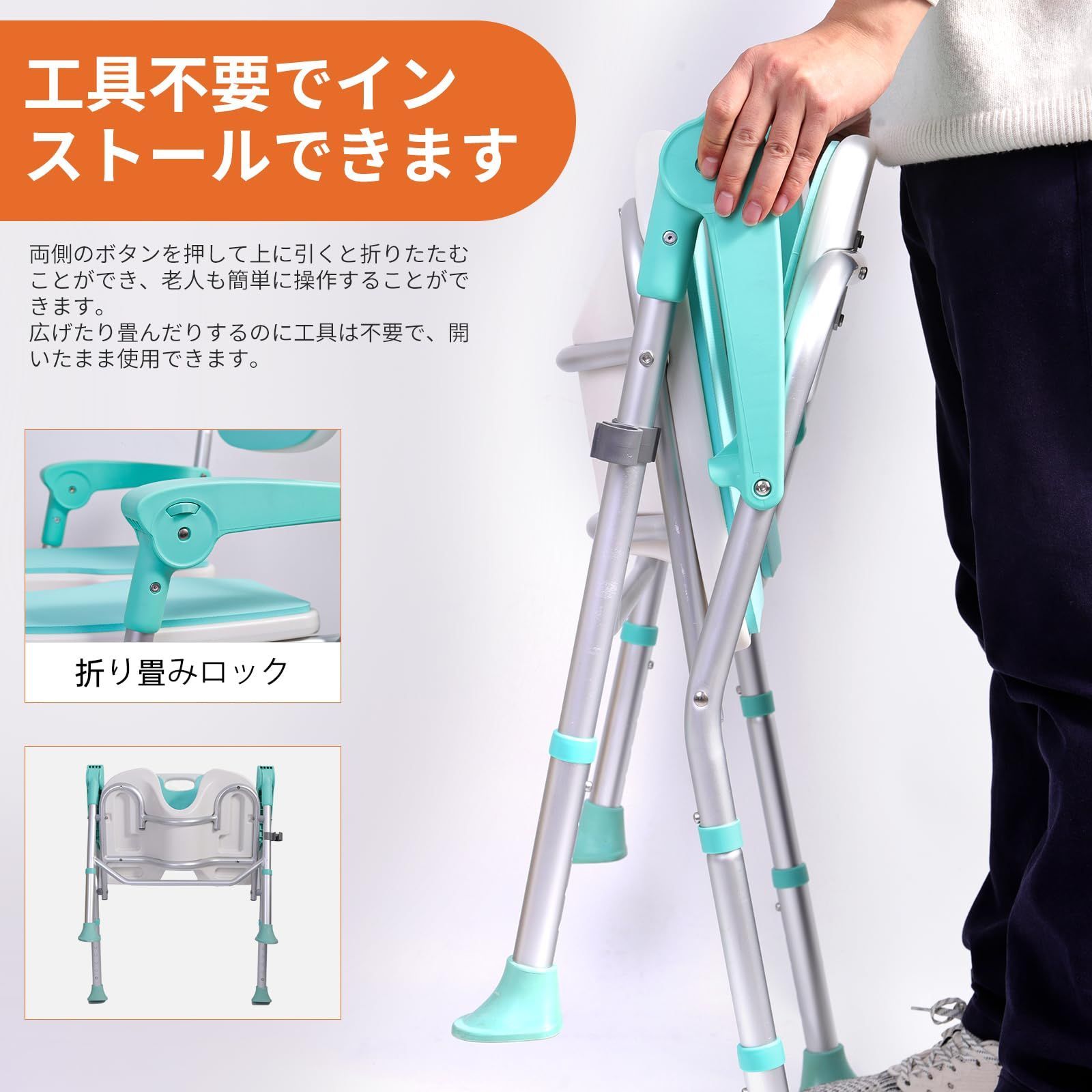 バスチェア シャワーチェア 介護用品 折りたたみ 滑り止め足 お風呂椅子 アルミ合金パイプ 組立簡単 ブルー HEINALOUS フリーサイズ