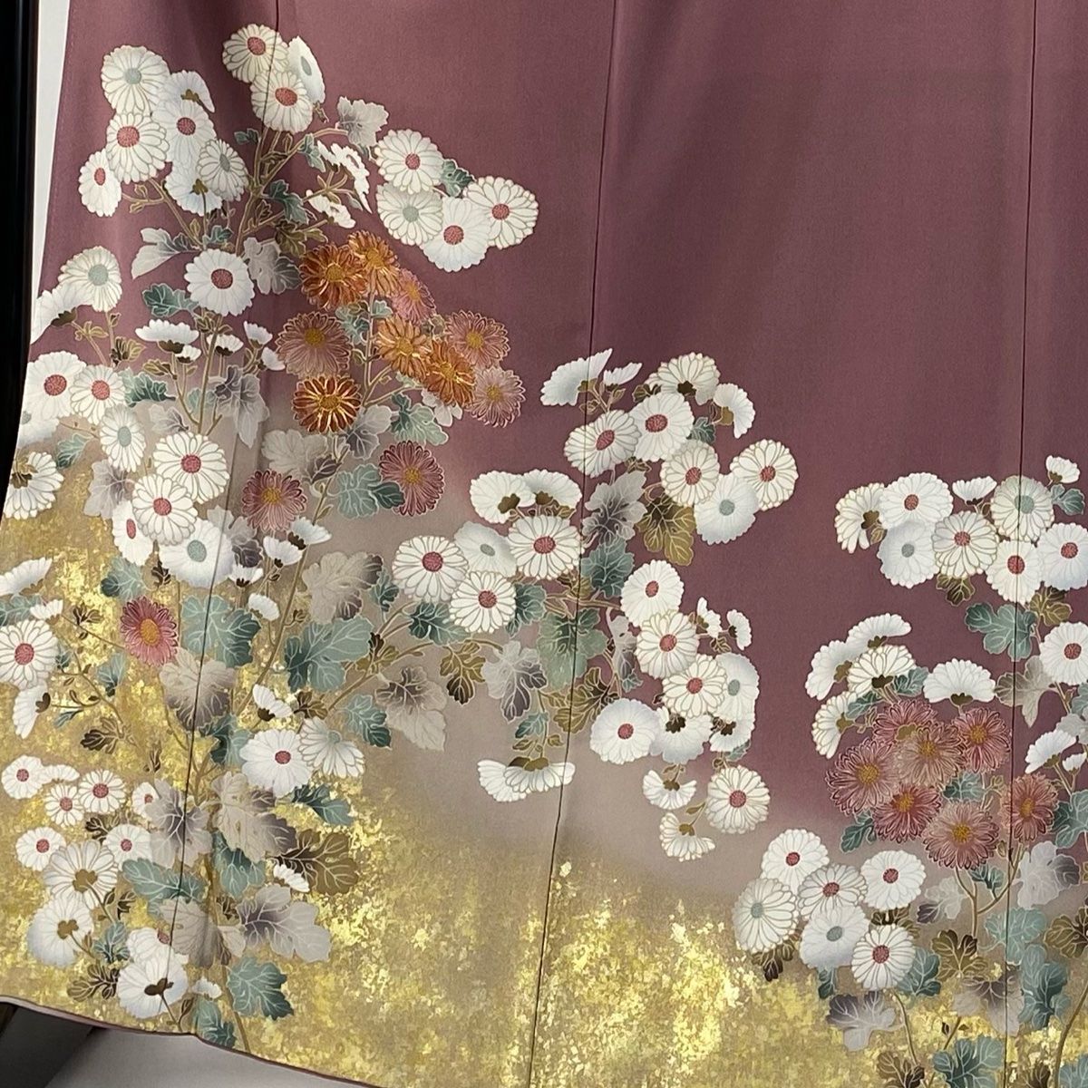 色留袖 身丈165 cm 裄丈65 M 袷 中村乃武夫 落款 菊 金糸 金彩 濃ピンク 正絹 一つ紋