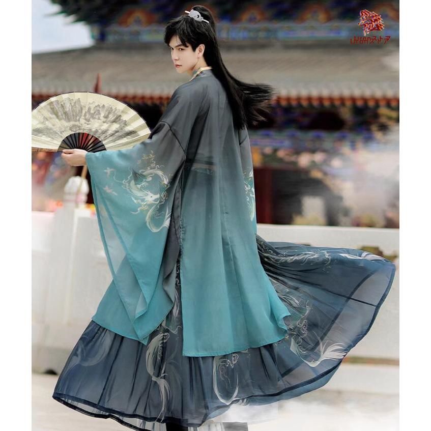 チャイナ服 上下3点セット メンズ レディース 大人 ペアルック グラデーション 白緑 黒緑 漢服&唐装 華流コスプレ衣装 中国古代服装 ハロ