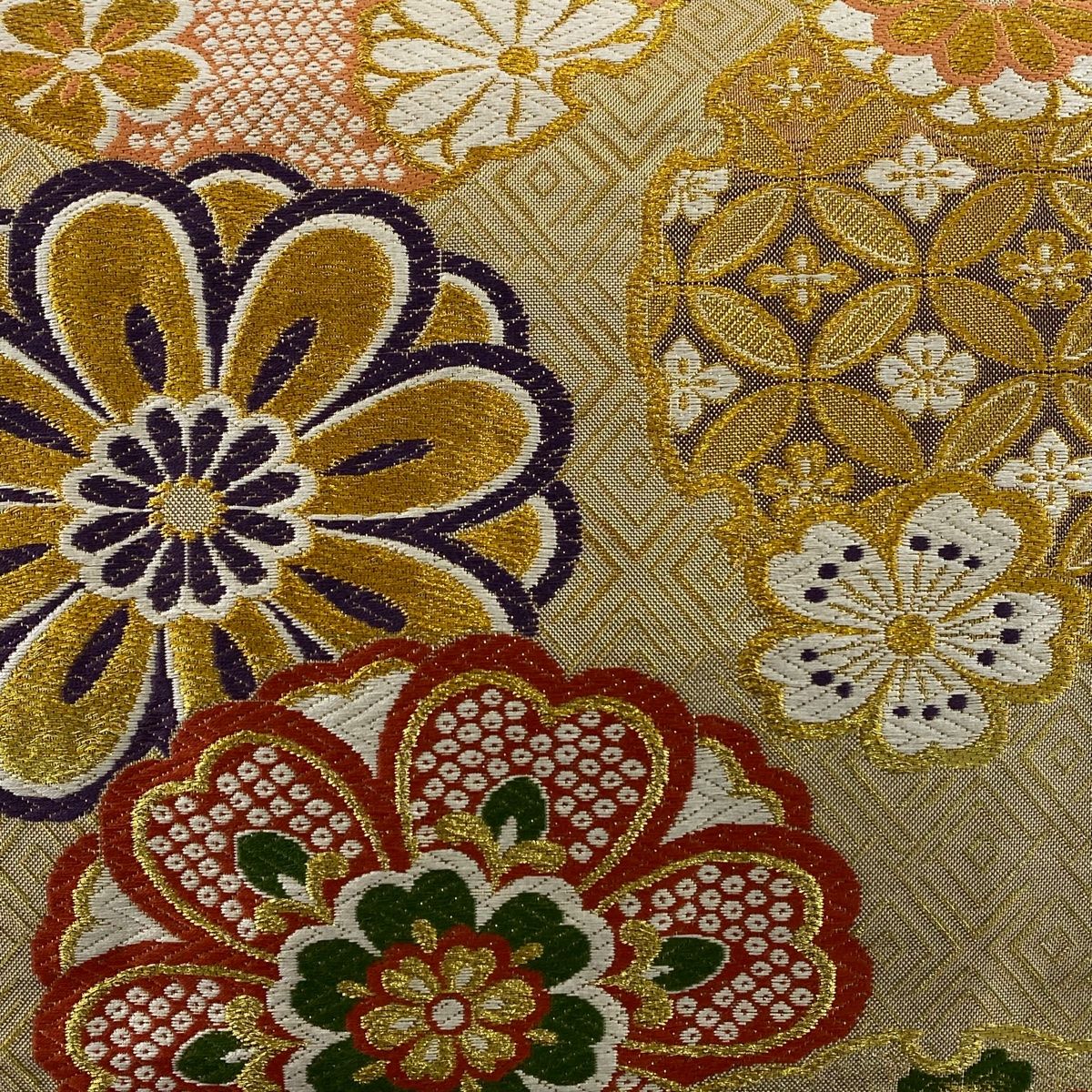 袋帯 秀品 振袖向き 華文 雪輪 金糸 箔 金色 六通 正絹