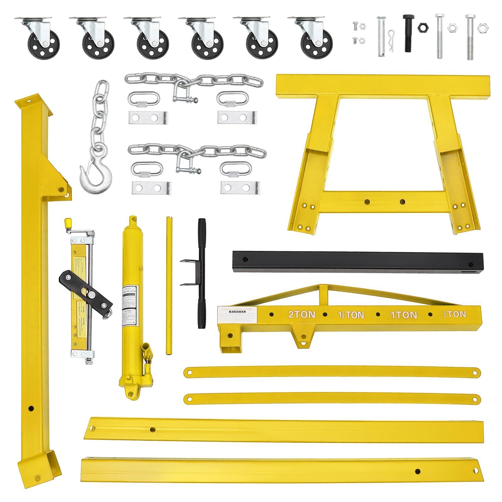 ガービー Garvee エンジンクレーン 2 t 4段階調節 油圧式 折りたたみ キャスター付き エンジンハンガー付き 2000 kg 作業工具 コンパク収納 吊り上げ 吊り下げ 家庭用 黄色