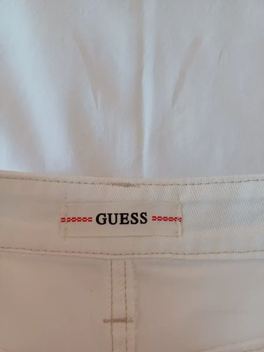 これは25インチのGuessライトベージュミニスカートです。素材が涼しいので、春夏に着るには最高です。フロントにはボタンがアクセントになっていて、より可愛らしく仕上がっています。他に質問がない場合は、すぐに安全な支払いを行ってください!