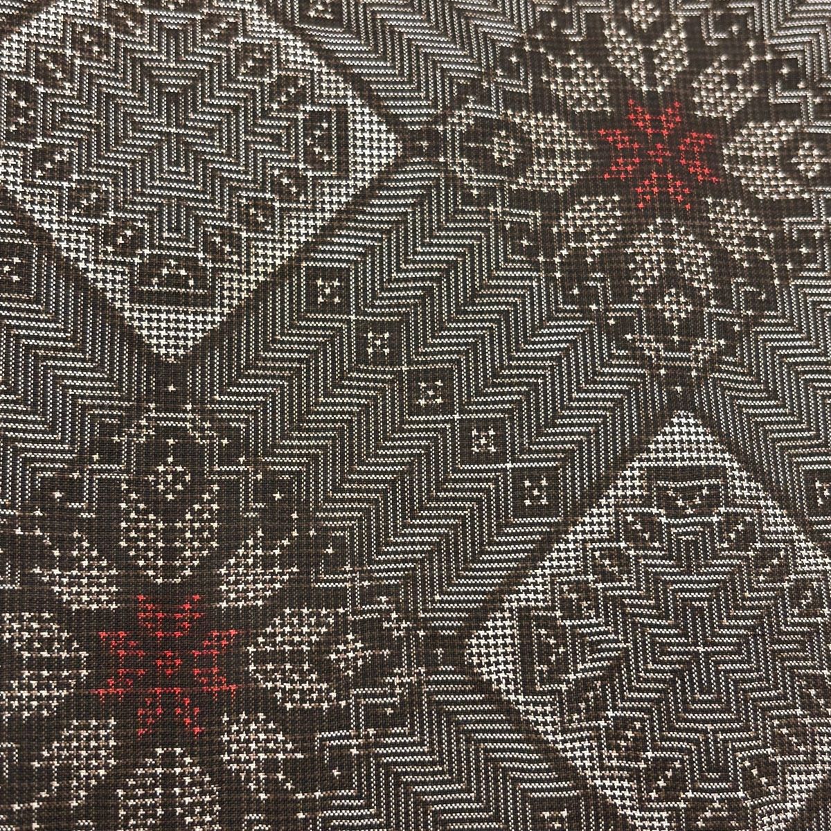 紬 身丈157.5 cm 裄丈63 S 袷 菱 花 焦茶色 正絹