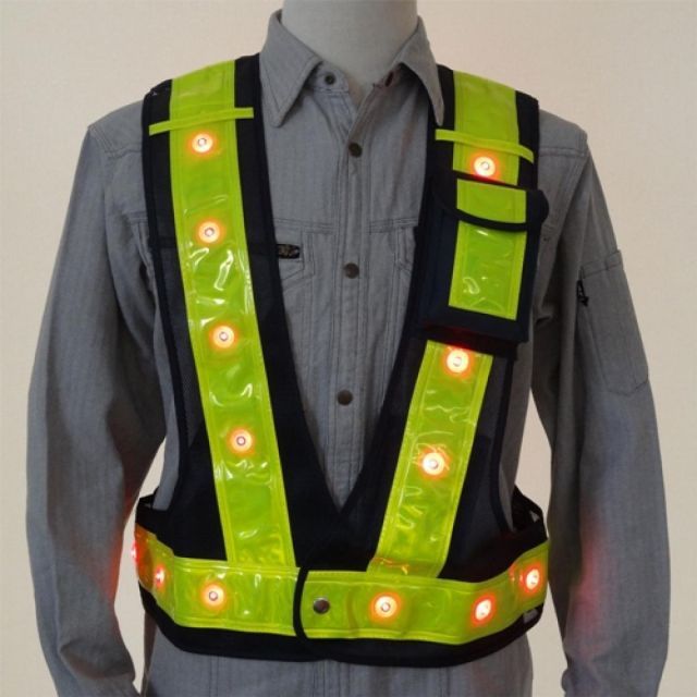 ●LED24個(従来品より8個多い)で視認性アップ。ポケットは3カ所(表側胸、内側左右)、シーバーフックが2カ所あり。横から見ても視野性抜群。反射幅60mm。寒冷地-10度対応反射材使用。