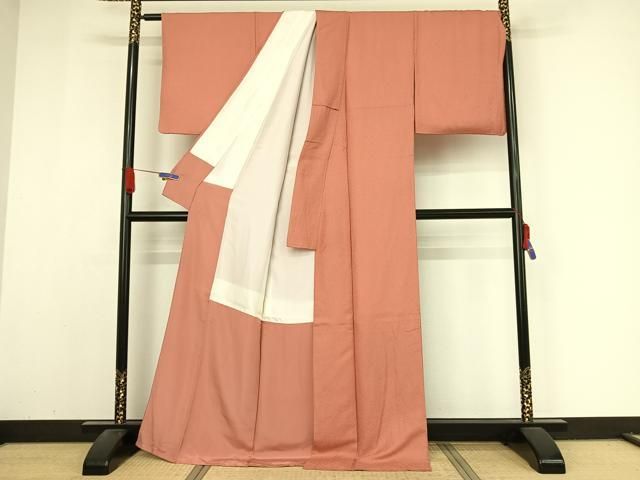 平和屋着物 上質な色無地 紋意匠 甚三紅色 正絹 np