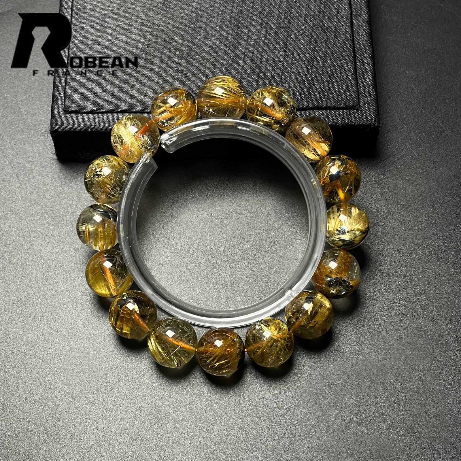 EU製 定価32万円 ROBEAN 太陽花タイチンルチル 黄金針水晶 金運 開運 ゴールド ブレスレット パワーストーン プレゼント 13.7-14.6 mm