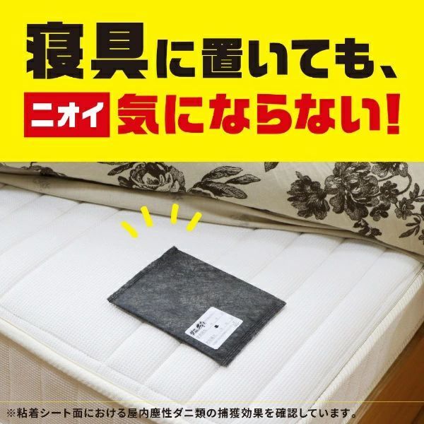 ●置くだけ簡単、捕獲したダニごと捨てられる便利なダニ捕りシートです。