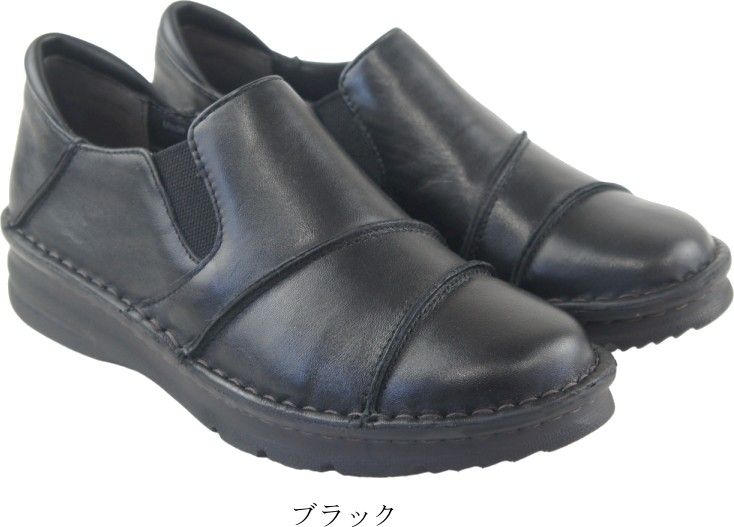 本革 スリッポン カジュアルシューズ レディース 幅広 4 E 軽量 コンフォートシューズ サイドゴア 履きやすい 歩きやすい 痛くない 蒸れにくい 通勤 htc 3801 ブラック 24.5 cm