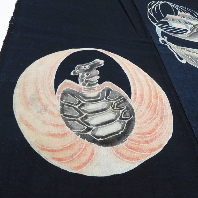 藍染 筒描き 筒描 筒書き つつがき 鶴 亀 蝶 草花 古裂 時代布 襤褸 古布 アンティーク リメイク きもの北條 A 1051-9