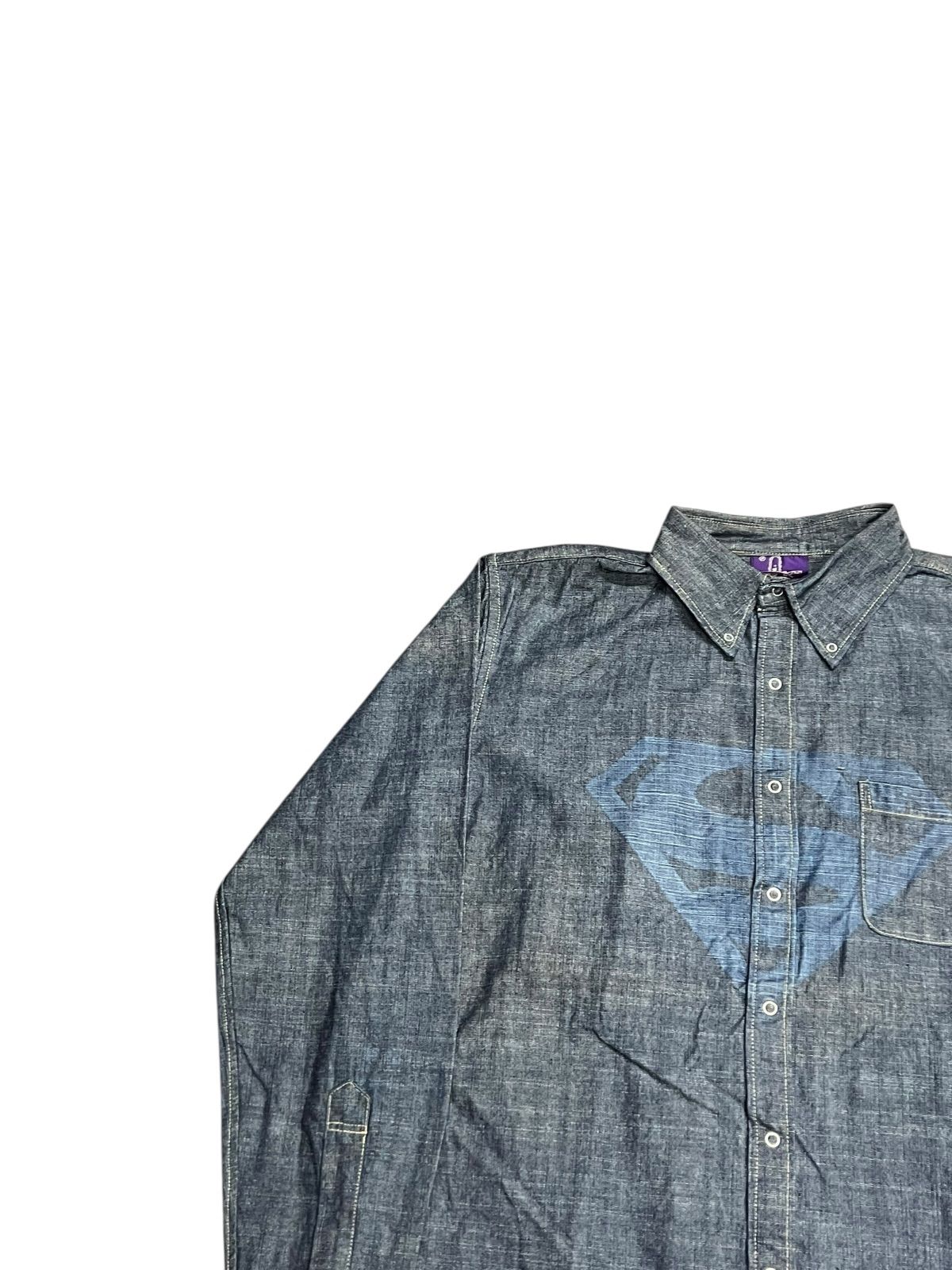 シンプルなシャンブレーシャツにスーパーマンのロゴが施されている1着。