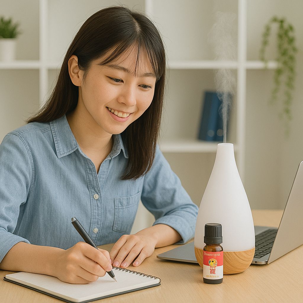 ☀️ 昼用ブレンド:午前中に2時間以上の芳香浴で、頭をすっきりクリアに。