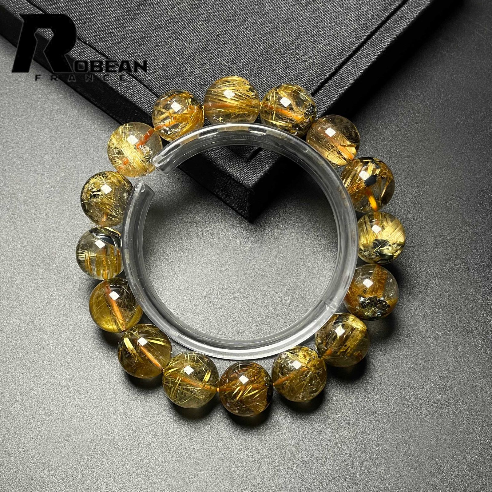 EU製 定価32万円 ROBEAN 太陽花タイチンルチル 黄金針水晶 金運 開運 ゴールド ブレスレット パワーストーン プレゼント 13.7-14.6 mm