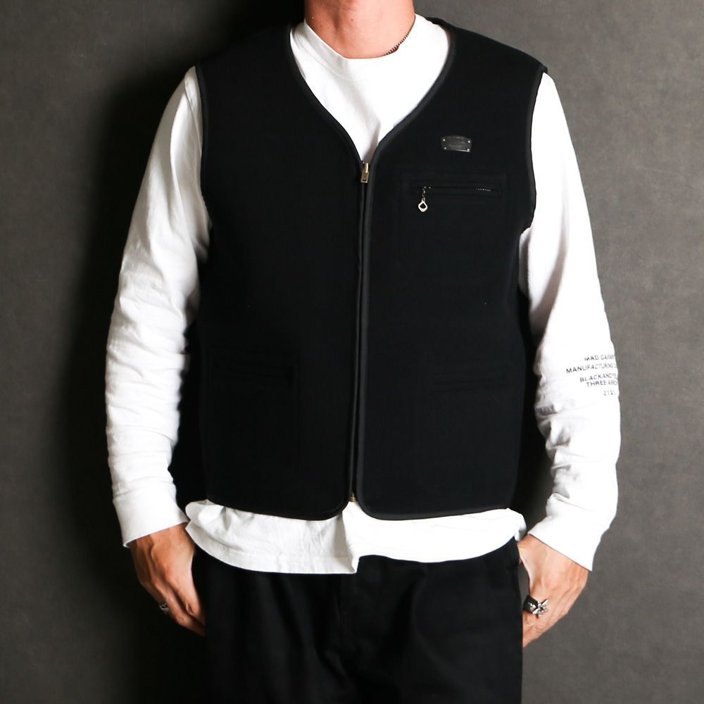 着こなしのアクセントになり、重ね着にも使いやすいアイテム。メルトンのベストは、シャツやスウェットなどの羽織ものとして、またアウターのインナー使いなど用途が広いです。