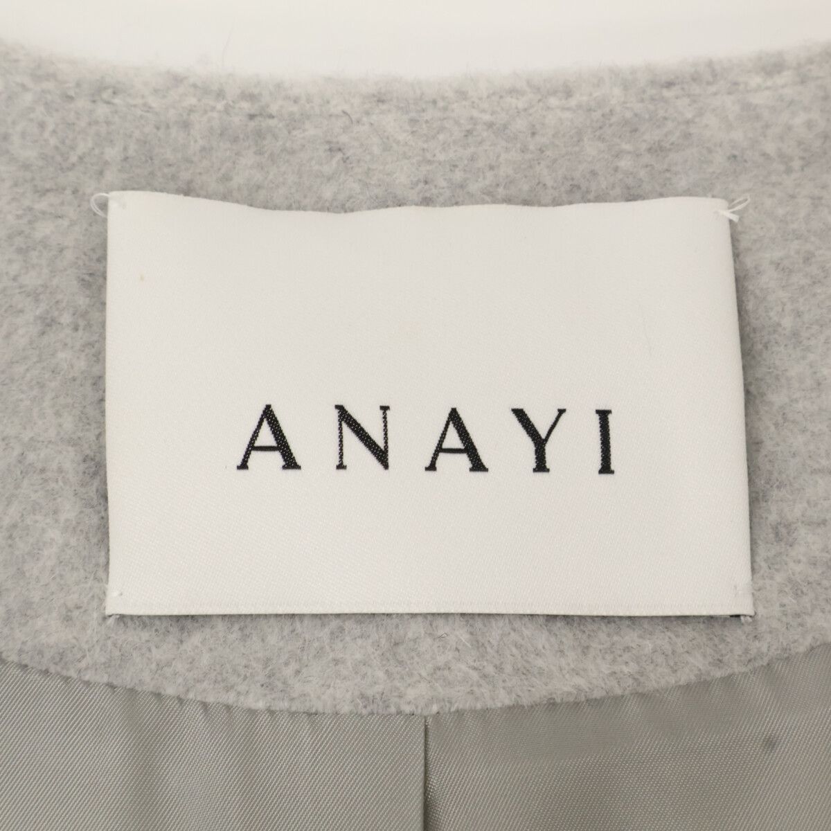 ANAYI アナイ グレー アンゴラ×ウール フォックスファーポケット ノーカラー コート 38