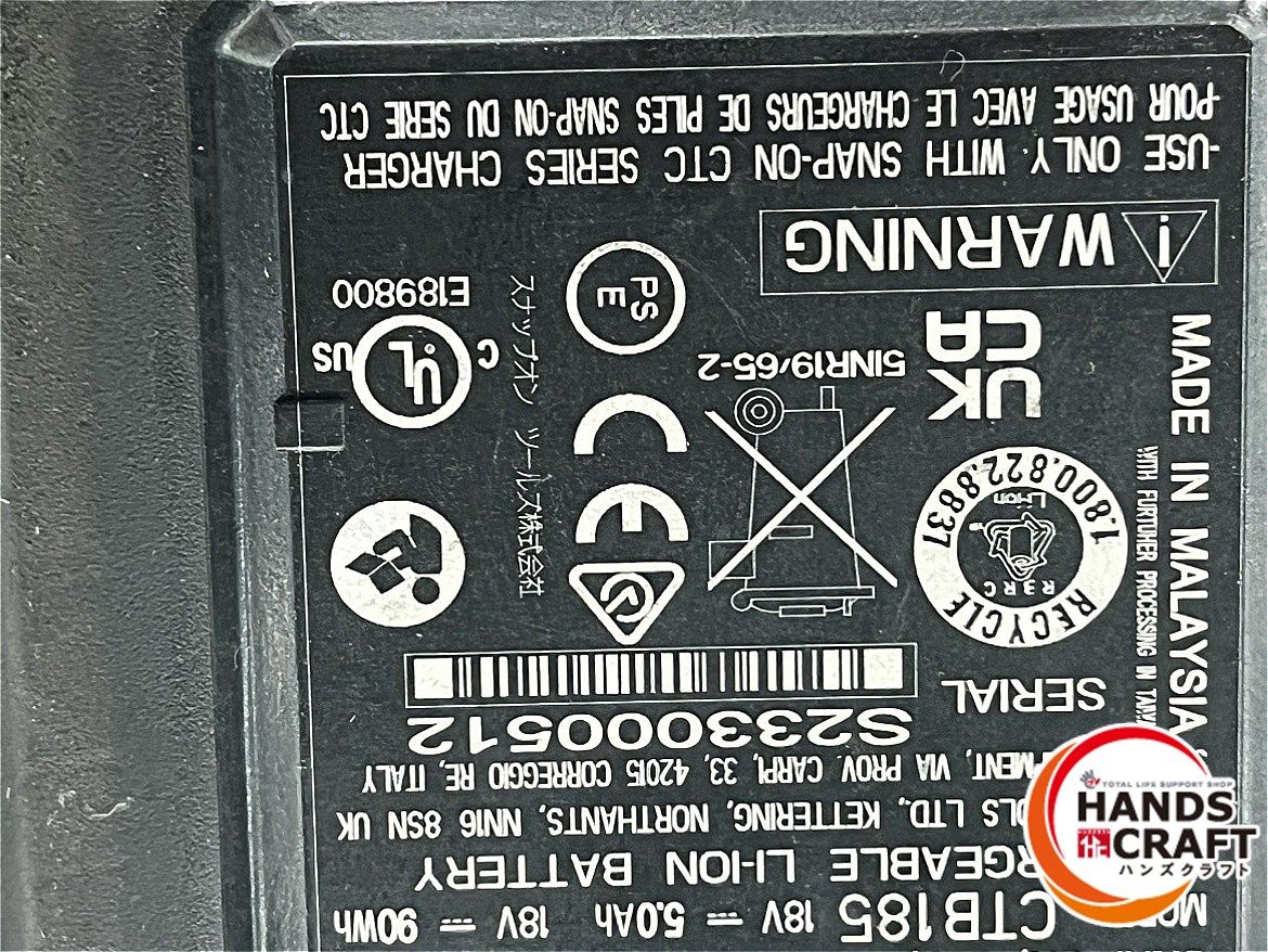 Snap on スナップオン インパクトレンチ バッテリCTB 185 2 充電器CTC 131 A 1