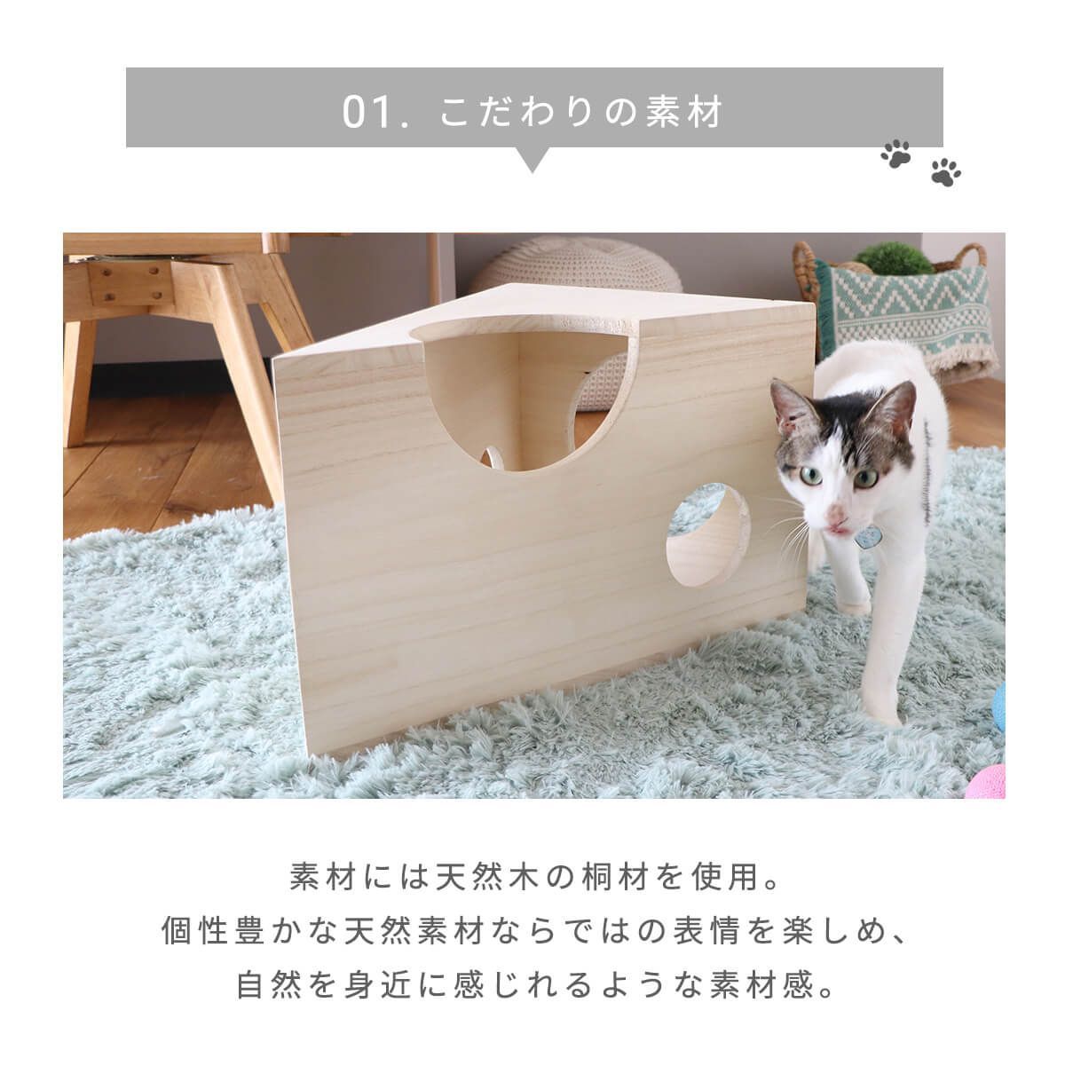 猫 家具 ネコ家具 インテリア 雑貨 かわいい 完成品 天然木 木製 桐材 無塗装 ペット用品 おしゃれ シンプル ナチュラル 北欧 キャット キャットハウス ペットハウス 収納 ボックス ネコ 省スペース チーズ 商 中 才 4