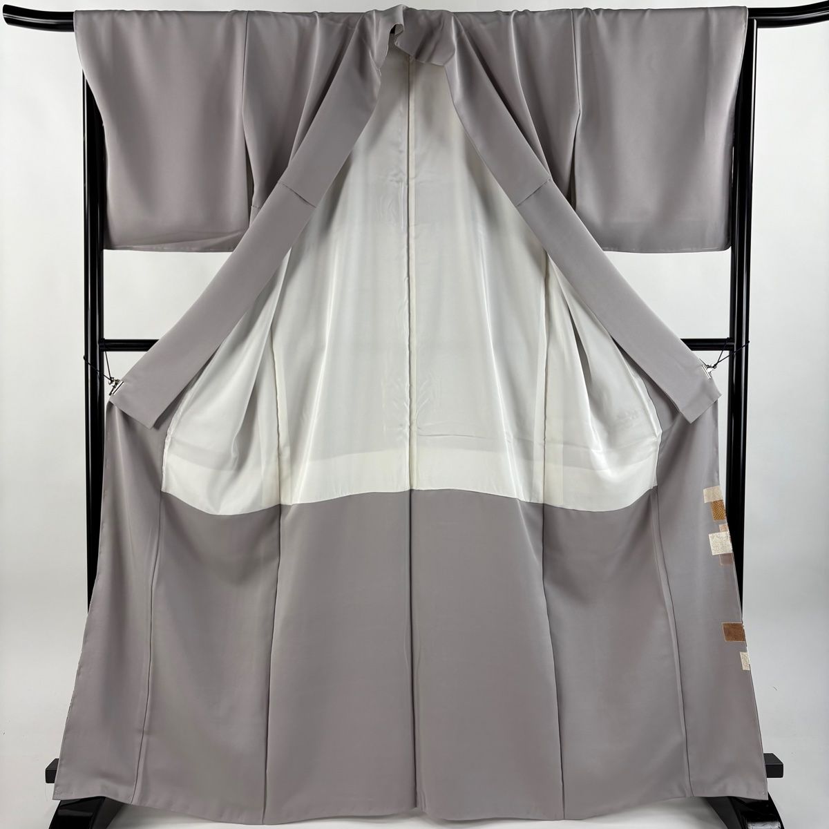 色留袖 身丈166 cm 裄丈67 M 袷 和楽器 花鳥 金銀糸 刺繍 灰紫 正絹 秀品 一つ紋