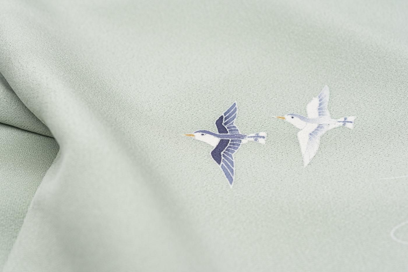 訪問着 波と鳥 トールサイズ 裄長 作家物