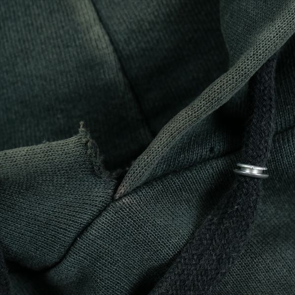 着用感があり、ボディ全体に毛羽立ちや色褪せがあります。袖口/フード部分にダメージがあります。フード紐の金具が取れています。