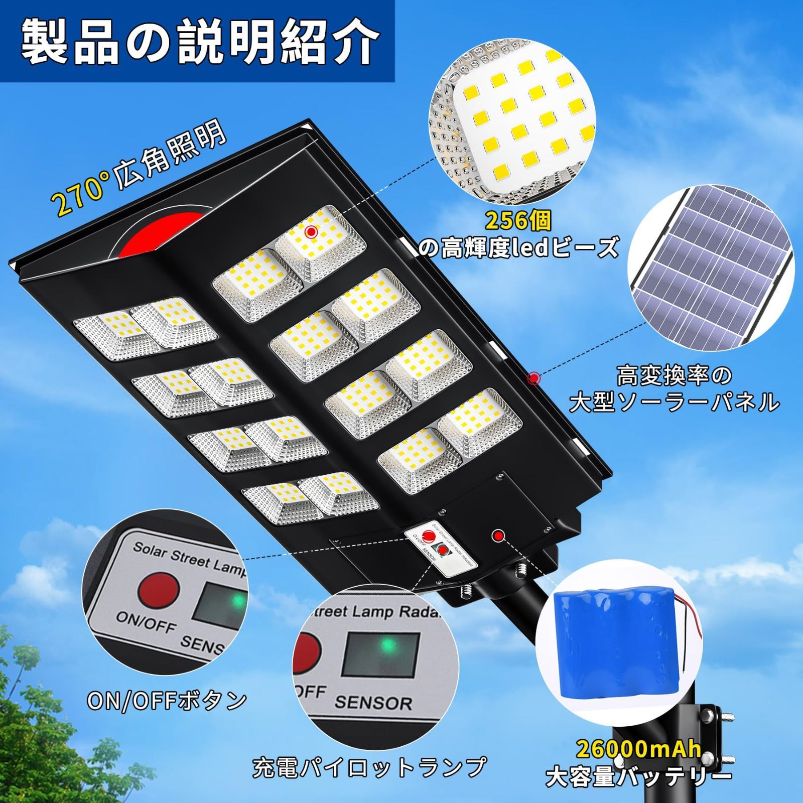【想像以上に明るい&Of-3200W 320000LM】ソーラー街灯 外灯 屋外 ソーラー IP67防水 人感センサー付き 駐車場・庭・ガーデン・屋外照明・防犯適用 リモコン付き
