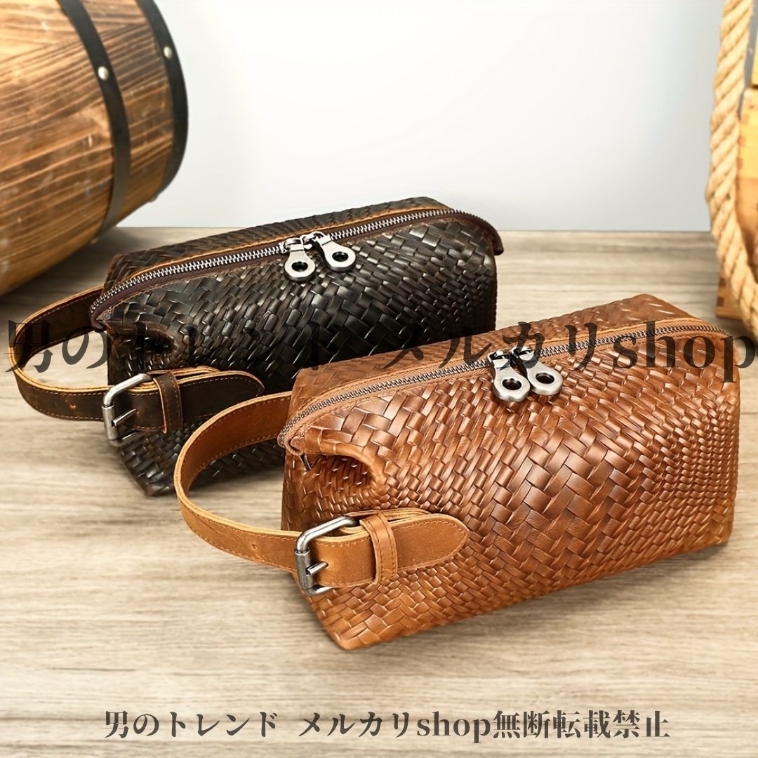 クラッチバッグ メンズ 本革クラッチバッグ ヘッドレイヤー牛革 大容量 旅行用オーガナイザー ポケット 安全なメタルクラスプ 調整 ショルダーストラップ ビジネス旅行 カジュアル 外出用 ラスティックデザイン ジッパー付きポケット スタイリッシュ