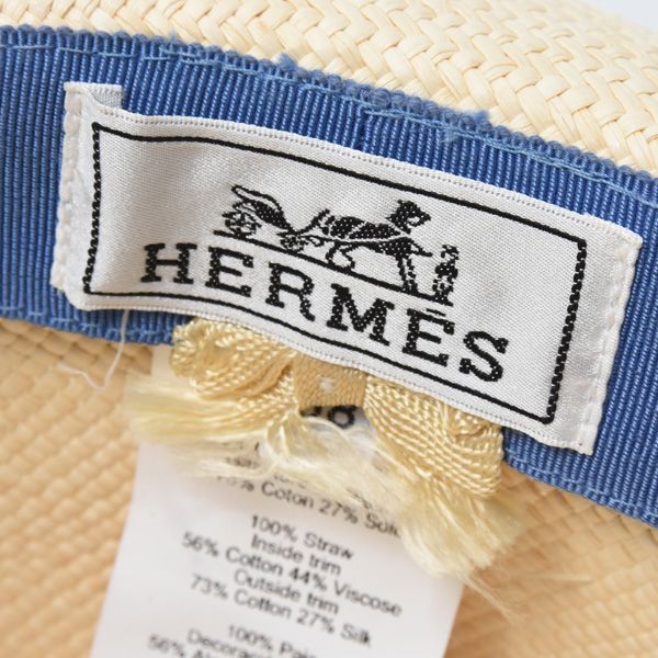 エルメス 帽子 レディース ストローハット 編み込み ナチュラル×ブルーリボン HERMES