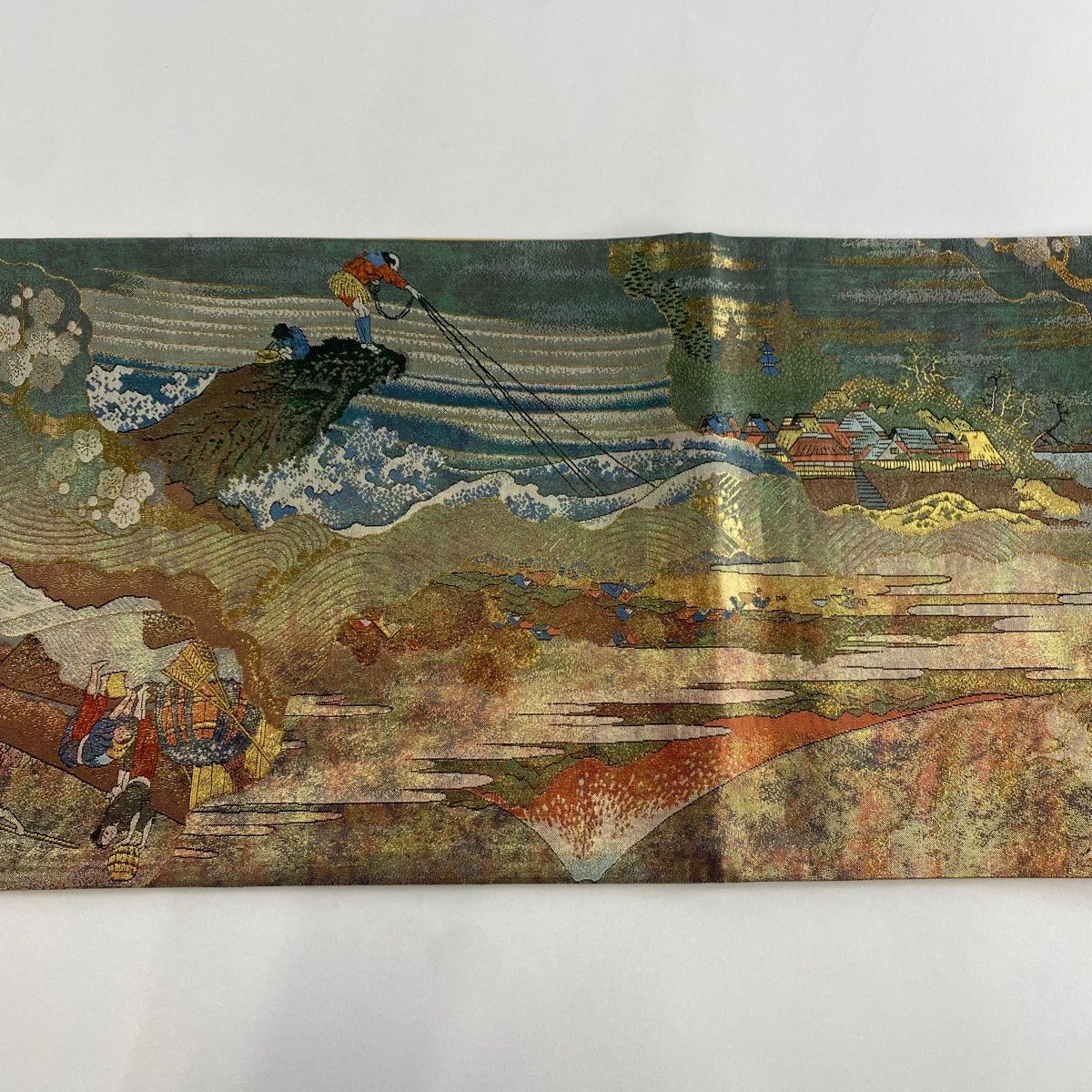 袋帯 秀品 風景 人馬 金糸 箔 金色 お太鼓柄 正絹