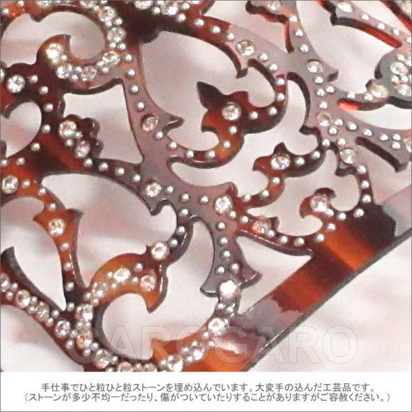 高級感のあるべっ甲風の素材にラインストーンを埋め込んだ伝統的なペイネタ(櫛)です。