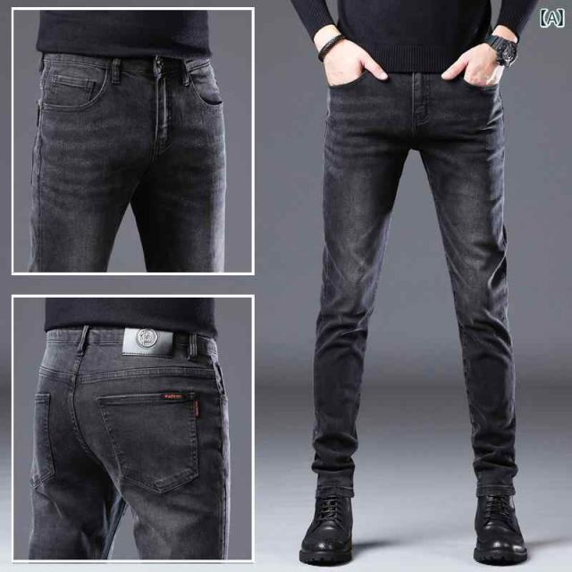 28 メンズ ファッション 服 オシャレ シンプル 大人 かっこいい 大きいサイズ ストリート 紳士服 ハイエンド ベルベット ジーンズ ぴったり スリムフィット 秋 冬 厚手 暖かい ストレッチ カジュアル パンツ