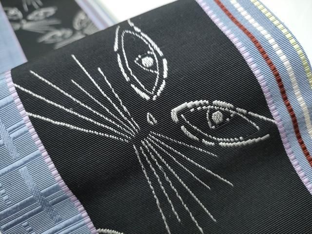 平和屋着物 本場筑前博多織 半幅帯 猫 井上絹織謹製 博多金ラベル 証紙付き 正絹 hy