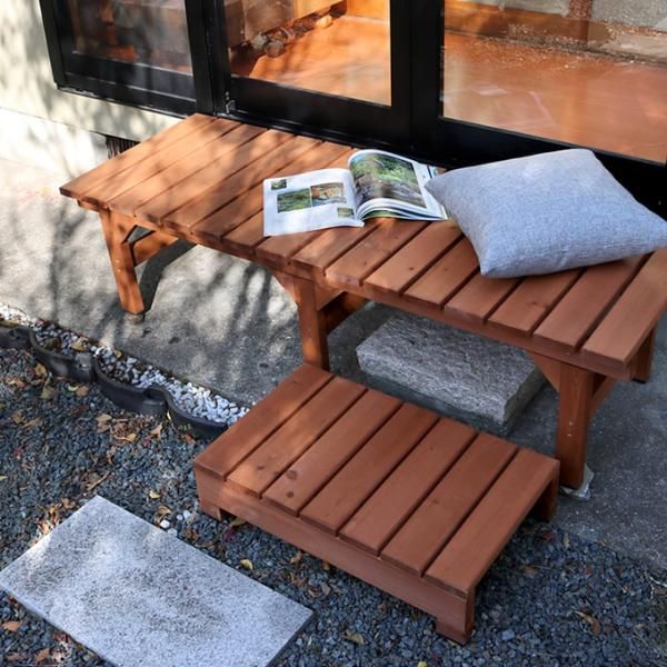 ベンチ ステップ台 セット 屋外 おしゃれ 木製 庭 ガーデニング 縁台 縁側 デッキ 庭先 椅子 軒先 玄関 エントランス sms-de-15555 stp
