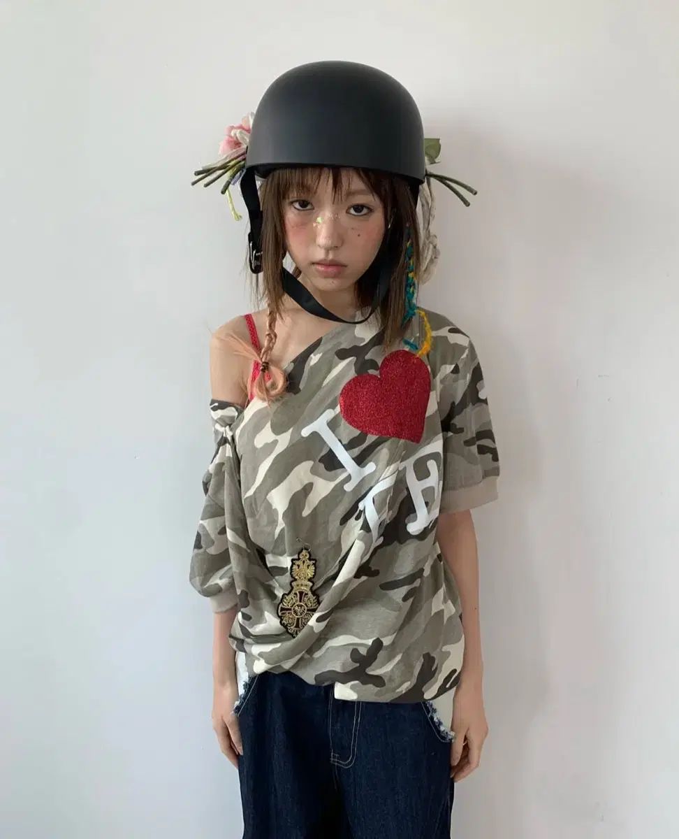 タグ O ショップフェアリー カモフラージュ Tシャツ cowl neck button t ー shirt