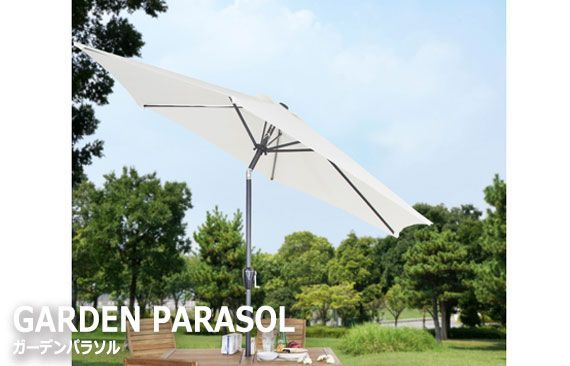 説明アウトドアやガーデンファニチャーにおすすめ。日差しを遮るガーデンパラソル。角度の微調整が可能です。