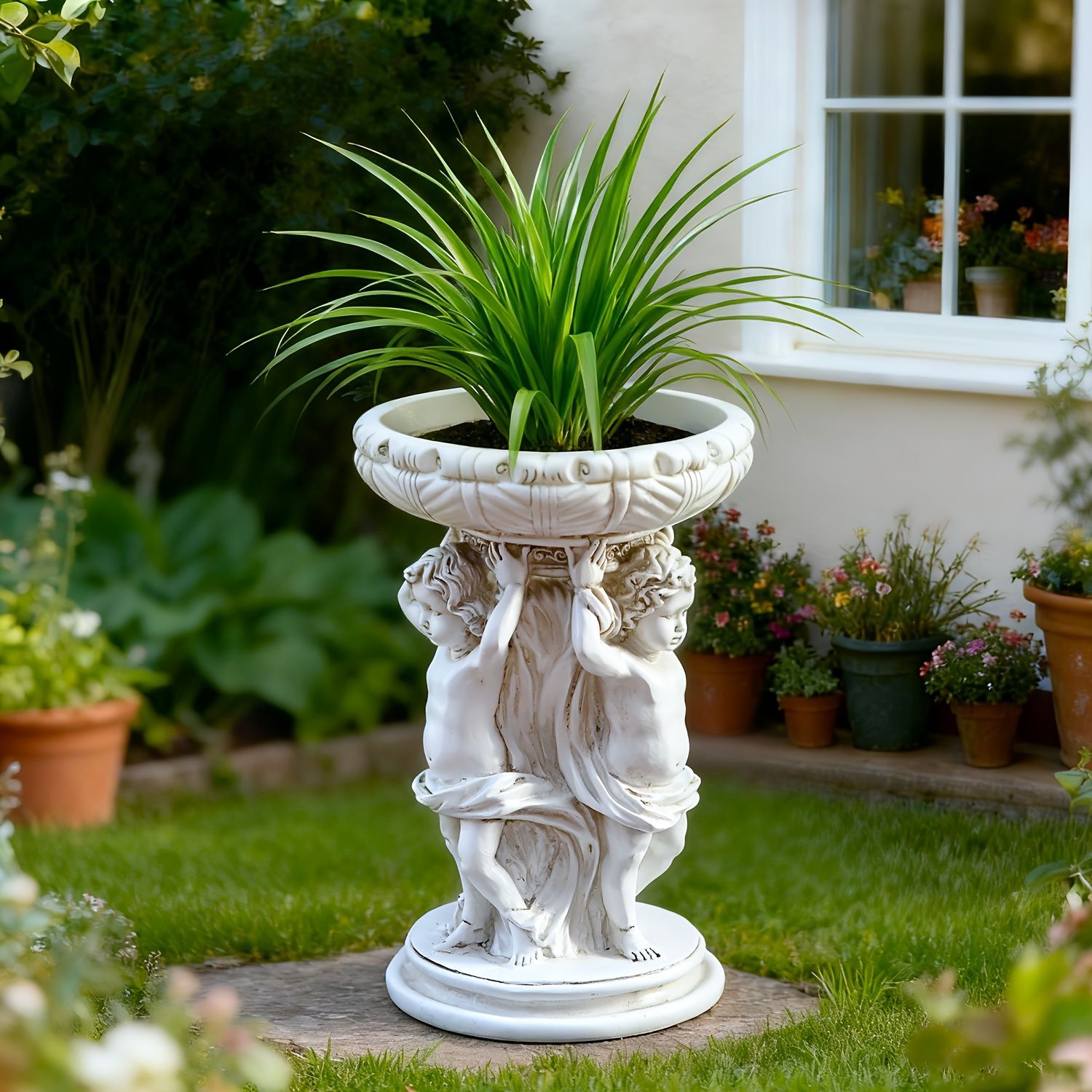 愛らしい天使たちが鉢を持ち上げている、ヴィンテージ風のプランターは、あなたのガーデニングに特別なアクセントを加えるアイテムです!