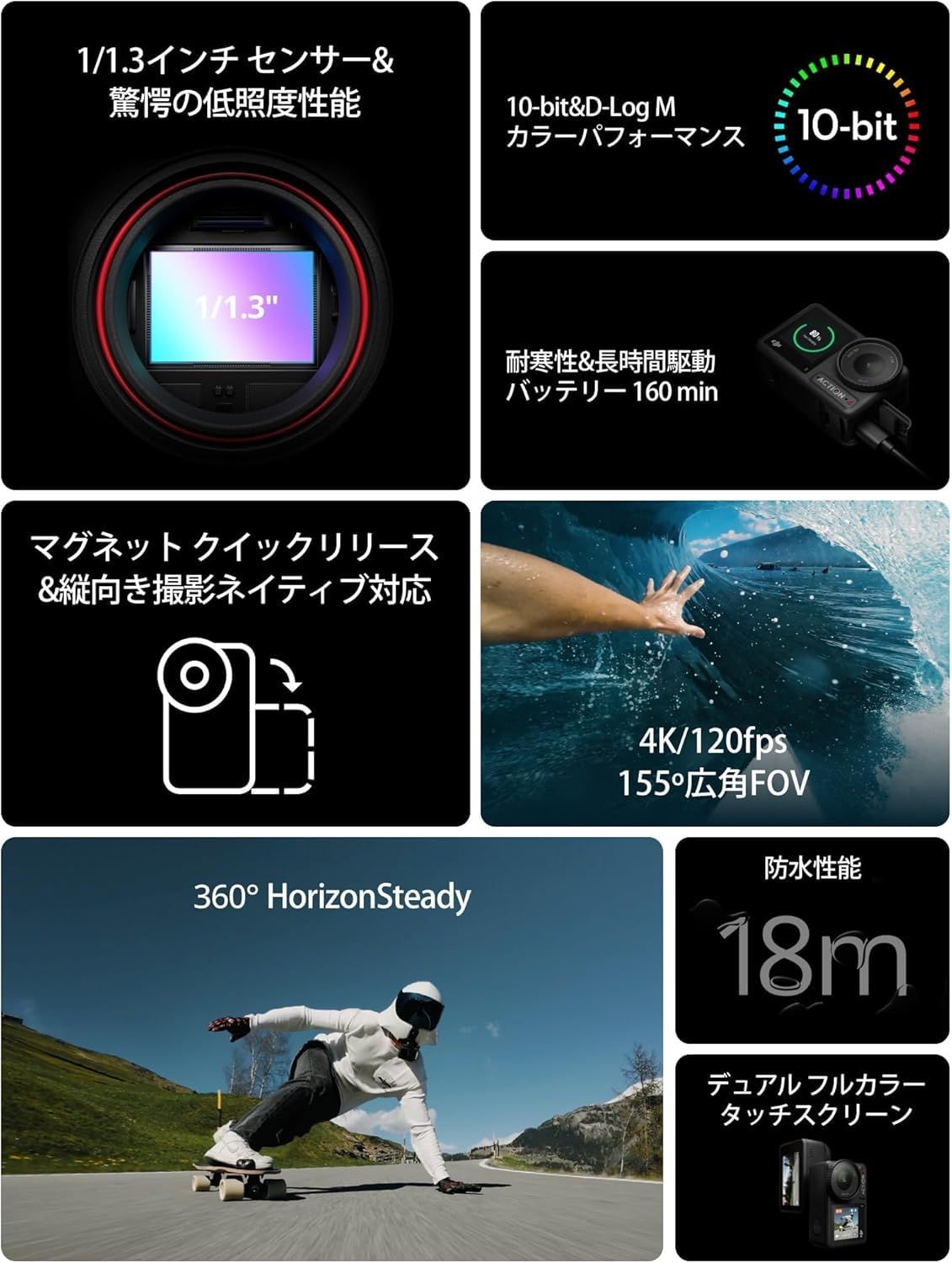 Action エクストリーム バッテリー×1,Osmo Action クイックリリース式アダプターマウント×1✅1/1.3インチ センサー&驚愕の低照度性能 -