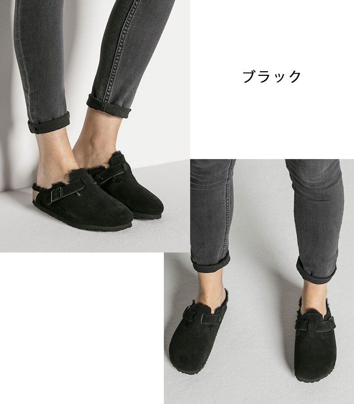 2025秋冬 ビルケンシュトック ボストン シアリング サンダル サボ メンズ レディース ファー ボア レギュラー スエードレザー ラムスキンボア 23 24 24.5 26 26.5 27 cm ブラック 黒 259881