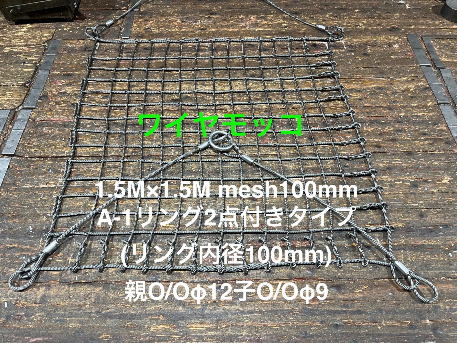 ワイヤーモッコ 1 5 m mesh 100 mm 親綱φ12 子綱φ9 A 1リング付き