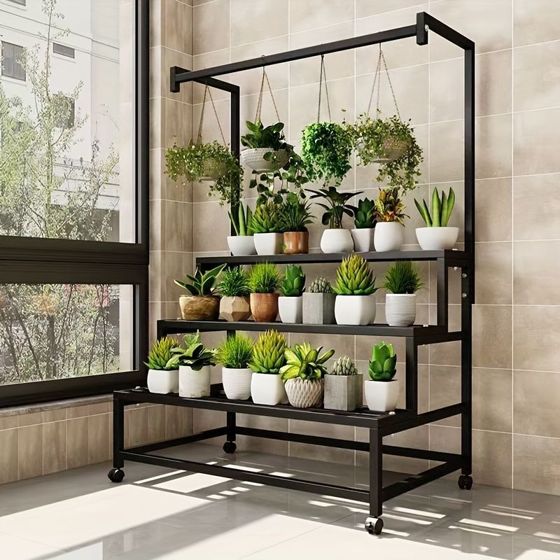 プランターラック 自立型 ミニマリスト フラワースタンドシェルフ バルコニー フラワーポットスタンド 室内 錬鉄製 ハンギングフラワースタン おしゃれ 整理整頓 スッキリ収納 金属製 アレンジ ホワイト ブラック