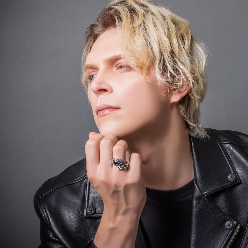 深い蒼のロンドンブルートパーズを中心に据えた、アールデコエレガンスのスプーンリング。多面カットの濃藍が指先で静かにきらめき、繊細にデザインされた石座が凛とした品格を添えます。アカンサスと唐草のレリーフを全面に刻んだSV925は、燻しの陰影と鏡面の艶が美しいコントラストを描き、横顔まで“絵になる”佇まい。内側にまで続く精緻な彫り込みは、手元を動かすたび彫刻のような立体感を演出。アトリエが手業で仕上げたこだわりの作品です。深いロンドンブルーは静謐さと知性を宿し、日常からドレスアップまで装いを気品よく格上げ。一本で存在感を放つ、時を超えて愛せるアートピースです。