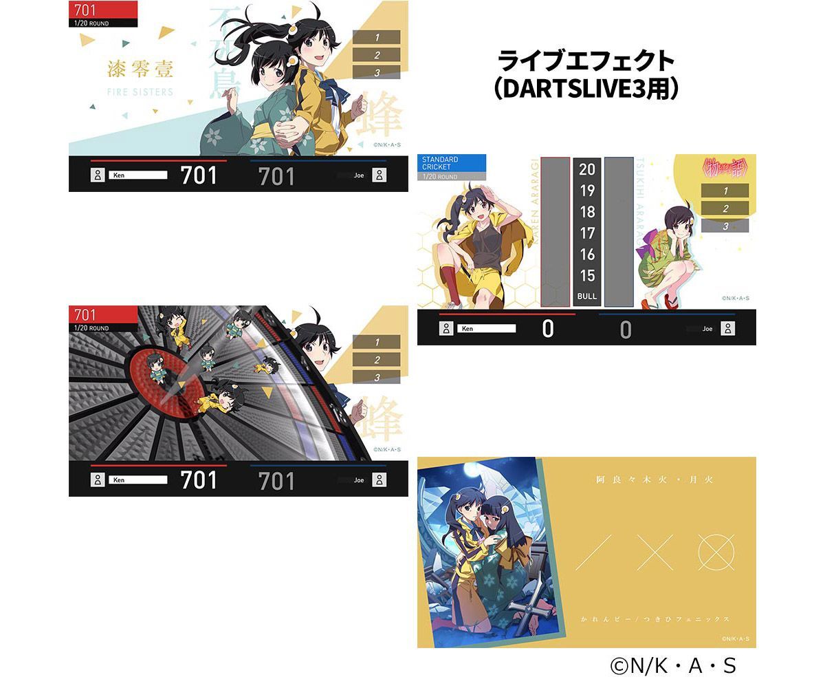 ファン待望の「物語シリーズ」のキャラクター達がダーツライブカードになって登場。