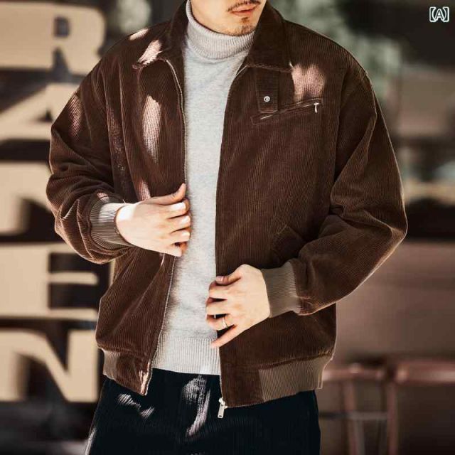 商品名:[L 12 ]メンズ 服 シンプル ファッション オシャレ 大人 かっこいい 大きいサイズ ストリート 紳士服 アメリカン コーデュロイジャケット 秋 スタンドカラー フライト ワークジャケット