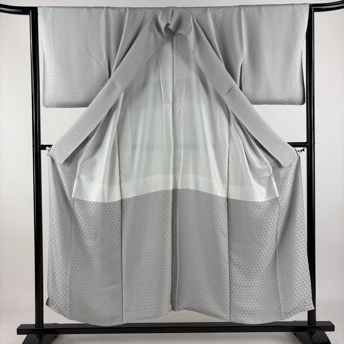 色無地 身丈152 cm 裄丈63.5 S 袷 地紋 灰色 正絹 秀品